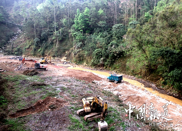 中国报道讯 (通讯员 覃源 岑福山) 连日来, 在巴马世界长寿之乡金三角(东兰、巴马、凤山)核心区的广西东兰县香河漂流旅游项目建设施工现场,一台台挖机正挥动大臂进行开挖河道、平整漂流步道;压路机正在碾压起漂点道路和游客中心基础;一旁的工人们正在紧张测量土地、砍草、和砂浆、整河道、垒石墙,呈现出一派热火朝天的劳动场面。到3月17日止, 已完成河道开挖疏通1200米 , 砍草清场1500 米, 完成储水坝开基前期工作, 和完成入漂水池基础开挖, 入漂点、终漂点、游客中心征租土地工作全部完成。
