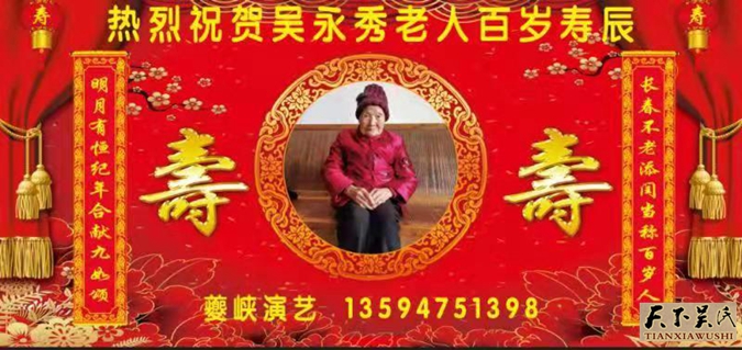 敬祝(奉节县安坪镇)吴姓姑祖母,百岁寿诞,幸福快乐