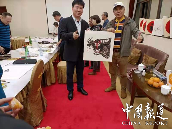 在广西东兰县进行文化旅游开发的第四届广州炎黄文化研究会会长、香港进源集团董事局主席、广西第一湾国际旅游股份有限公司董事长吴进枝3月27日晚在东昇国际大酒店召开了采风团座谈会,采风团成员与当地有关部门领导进行亲切交流,并现场拨墨书写作画,据统计,采风团在东兰考察期间,完成绘画、书法等作品60多幅,拍摄图片作品120多幅。吴进枝会长在座谈会上表示,广州炎黄文化研究会几年来汇聚了众多的有志于传承中华传统文化的各方精英,组建了炎黄画院,为研究会吸纳了一批重量级的艺术家。在文化传承、理论研究、出书出刊、活动交流、文化宣传等各领域都取得了丰硕的成果,作为新一届研究会主要负责人,一定继续发扬光大。希望通过这次活动,画家们带着东兰山山水水素材,精心创作,把广西东兰山水和民俗风情融入画中,举办一次全国性的高质量画展,向建党100周年献礼。采风团成员表示,将发挥各自所长,创作出书画摄影美术作品,以缅怀先烈和激励后人,宣传推介东兰文化旅游产业。