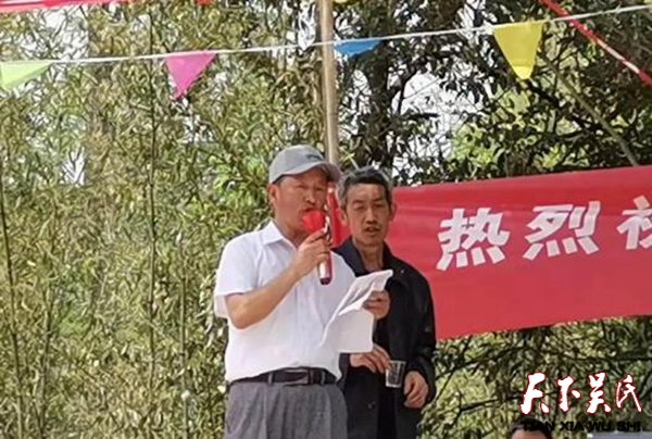 庆典吉时已到,由贵州省吴文化研究会、贵州省吴氏宗亲总会会长吴学强和惠水县吴氏宗亲会吴文辉老宗长为族谱碑揭牌剪彩!奏乐、礼炮齐鸣!紧接着雷鸣般的掌声请出了贵州省吴氏宗亲总会会长吴学强为这次活动讲话,他在讲话中强调吴氏家族要以团结一致、构建和谐为宗旨;弘扬正气、发展经济为目标,认真打好“十四 五”开局之年的第一战,希望我族同胞紧跟党的步伐共同走向辉煌!