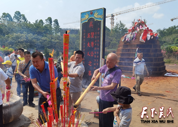 天下吴氏网讯(海南站吴乾山报道)清明时节雨纷纷,路上行人欲断魂,借问酒家何处有,牧童遥指杏花村。(古诗词:唐杜牧《清明》)。今年清明节来了,雨却未到,即使如此,海南省海口市美兰区演丰镇龙寓坡,吴氏入琼始祖,唐代户部尚书“吴贤秀”公墓地、文昌市翁田镇抱虎山下,唐代户部正郎二世祖“吴玟”公墓地。他的子孙后裔成千上万,不忘祖先恩德,每年的清明节前后都会从四面八方来到这里放上供品于坟前,上香敬拜,低声细语,对先祖的感恩敬仰,祈祷平安顺利。可谓“皆清净明洁,香气氤氲通祖神”。