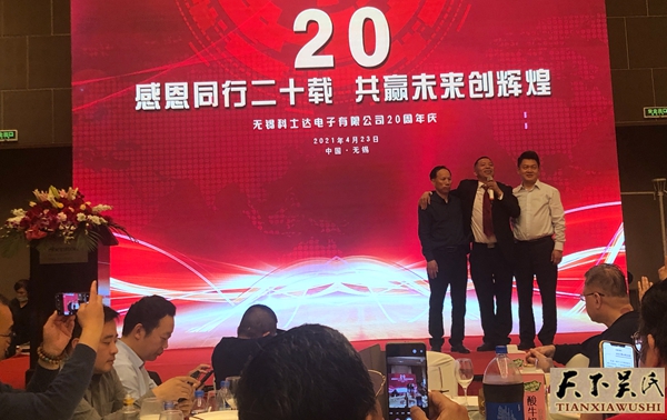 天下吴氏讯(吴建东无锡报道)筚路蓝缕,二十载走南闯北不惧风浪;二十年不忘初心焕发新光芒。岁月如歌,风霜如画。无锡市科士达电子有限公司从2001年成立至今,已满二十年,今天我们相聚在富力喜来登酒店,共同庆祝无锡科士达电子有限公司20年生日。无锡科士达电子有限公司过去的20年是一段奋斗的历程,是一种厚重的积淀,20年来,无锡科士达电子有限公司在总经理吴思仁带领下上下风雨兼程、创新前行,勇于面对挑战,不断抓住机遇,夺取发展新高地。相信下个20年,无锡科士达电子有限公司一定会创造更加灿烂辉煌的明天!