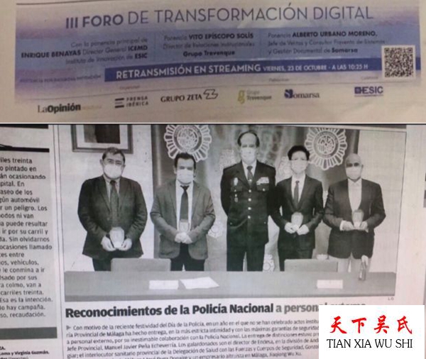 2020年10 月 22 日,西班牙马拉加市警察局举行抗击新冠病毒大会,数十名警察分局局长出席。大会为抗击病毒有功人士颁奖,青田侨胞吴佳琼获奖。当地媒体作了详细报道。