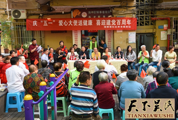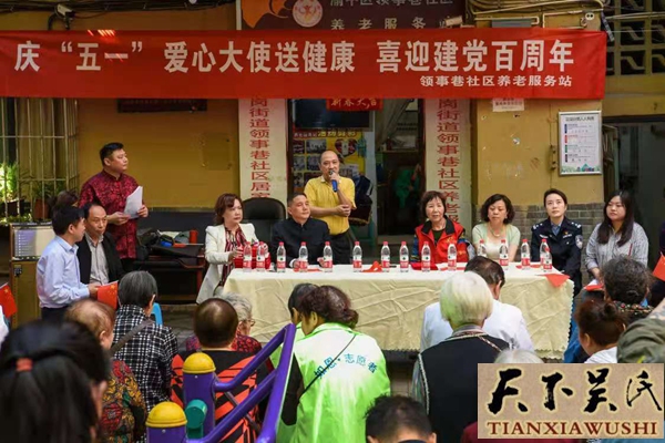 天下吴氏讯2021年4月30日,渝中区七星岗领事项社区养老服务站隆重举行,庆五一爱心大使送健康进社区,迎建党100周年庆祝活动大会。本次活动由渝中区领事巷社区主办,渝中区领事巷社区养老服务站承办。
