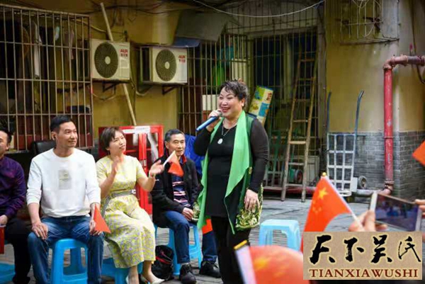 在歌声结束,首先请渝中区领事巷社区工作服务站蒋站长讲话,代表社区工作服务站对各位嘉宾领导和来宾表示致欢迎词,重庆市渝中区民政局社会组织和社会工作科科长王北川讲话,王科长说,他代表个人向大家表示节日的问候,并祝五一节快乐,讲话结束,现场一片掌声。这时,主持人隆重告诉大家,今天现场来了邀请到一位重要嘉宾,他是华太(国际)传媒公司董事长、邓小平特型演员汪小平,今天现场脱口秀邓小平当年乡音讲话,发展才是硬道理!和现场来宾,居民互动。把活动推向了高潮,并合大家合影留念。