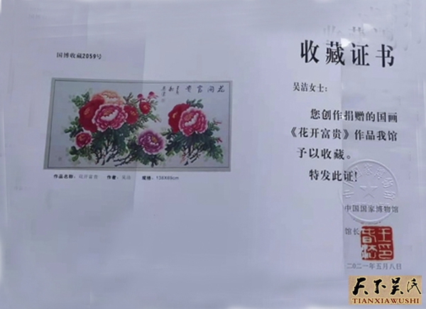 2021年5月8日国画牡丹《花开富贵》被中国国家博物馆收藏,