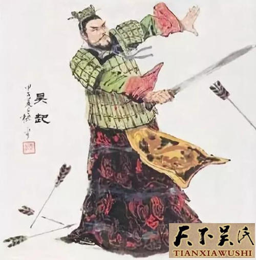 吴起(前440年-前381年),姜姓,吴氏,名起,卫国左氏(今山东省曹县)人。 [1]  战国初期军事家、政治家、改革家,兵家代表人物。吴起一生历仕鲁、魏、楚三国,通晓兵家、法家儒家三家思想,在内政及军事上都有极高的成就。在魏国,他指挥魏军屡次击败秦国,占领西河之地,任西河郡守。在楚国时,吴起被任命为令尹,辅佐楚悼王进行变法,增强国力,扩展了楚国的疆域。前381年,楚悼王逝世后,因变法得罪守旧贵族,吴起惨遭杀害。著作有《吴子兵法》,传于世,与兵圣孙武并称“孙吴”。唐肃宗时,位列武成王庙内,成为武庙十哲之一。宋徽宗时,追封广宗伯,成为武庙七十二将之一。
