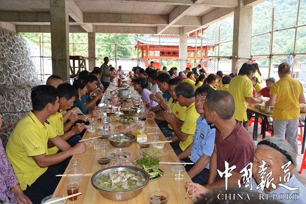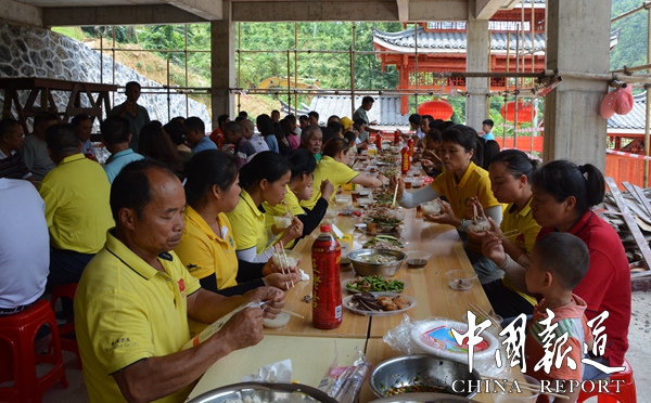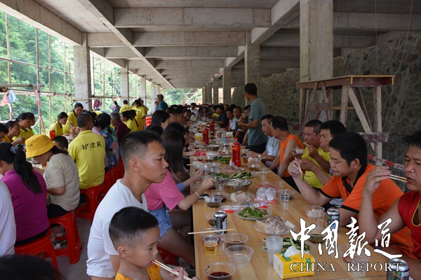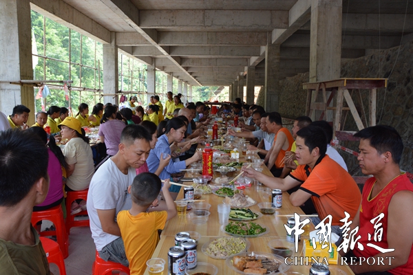 中国报道讯(通讯员 覃源 岑福山) 2021年年6月19日上午,广西东兰县隘洞镇拉板村村民韦有定,一大早就把家里一头近两百斤肥猪宰了,然后用三轮车把肉拉到广西第一湾股份公司香河漂流景区终漂点游客服务中代表村民宴请公司全体员工,在当地传为佳话。