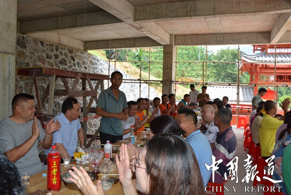 当天中午,景区游客中心,鞭炮声、山歌声响个不停,村两委班子、生产队干、群众代表、镇府老领导等与第一湾员工共150多人,聚在一起,谈笑风生,热闹非凡,大家一起共同探讨景区发展大计,展望村里美好未来。村民代表韦有定在宴会上动情说到,这次活动是我们村民自发的,第一湾公司把景区建设在我们家门口,为群众办了实事,给村民带来实惠和美好的未来,我们一定珍惜难得的机遇,配合公司把景区建设好,造福子孙后代。公司常务副总经理南建陆,在宴会上表示,东兰老区人民的热情好客和深情厚意,公司一定记在心里,在东兰县委、县人民政府领导下,在广大老区人民的支持下,公司一定不辜负大家期望,把景区建设好,经营好,为东兰全域旅游产业作出贡献,带动当地老百姓致富。