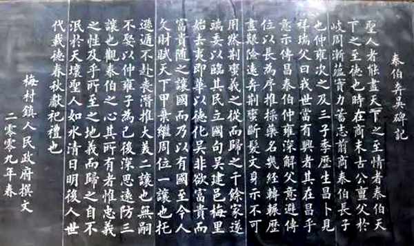 泰伯奔吴是泰伯留给我们乃至中华民族的一笔无与伦比的文明和文化宝藏,随着时代的推移,其价值会不断彰显,在中华民族迈向现代化的过程中,泰伯精神对人类文化的坚守与文明的进步,对和谐社会建设实现中国梦将会发挥越来越大的作用。