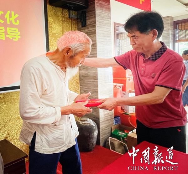 老会长吴立兴欣然接受吴剑平赠送《吴学(史)研撰文集》