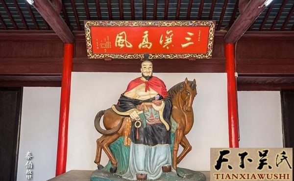 “德让两家天下,功辟万古江南。”是人民颂扬泰伯的“让王”美德和“建吴”功勋,江南人民奉泰伯为万家始祖,世代相传。不管朝代更迭,不管政治斗争,岁时祭祀泰伯传三千多年历代不废,生生不息,延续至今更旺烈。泰伯形象与日月同辉。