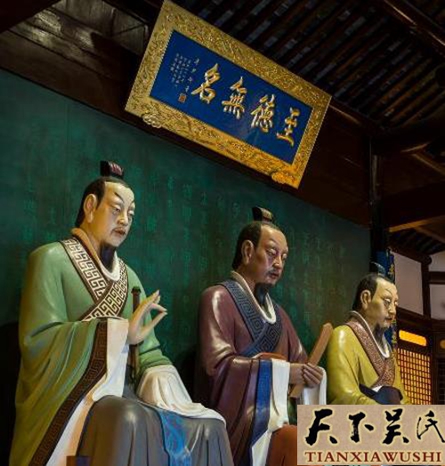 泰伯的这种做法被历史称为三让天下,江南人民称泰伯为“让王”。梅村泰伯庙前面广场的牌坊上,镌刻“至德名邦”四个大字,泰伯庙正殿叫“至德殿”。至德,是对泰伯人生最高评价。无锡暨江南的文明史,是从泰伯肇姓而闻名华夏彪炳于世的。泰伯虽然不像秦皇汉武那样创造轰轰烈烈的功业,但是他的道德品行、人格魅力,却很少有人能及。