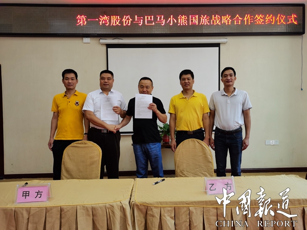 参加战略合作签约仪式有广西第一湾国际旅游股份有限公司常务副总经理南建陆,巴马小熊国际旅行社有限公司总经理黄秋夏,以及双方有关人员。