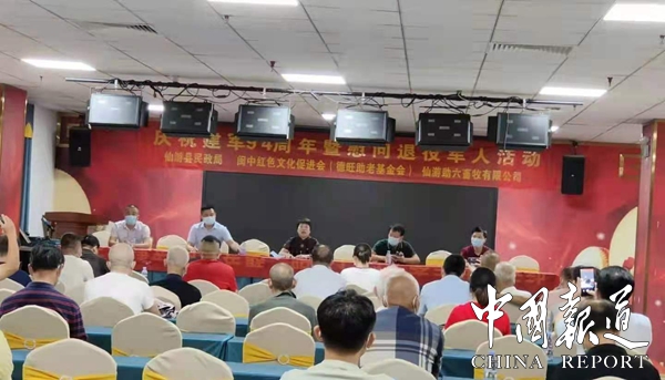 8月1日 ,座落在红木国际博览城的闽中红色文化促进会的大厅里不时传出阵阵欢声笑语,由仙游县民政局、闽中红色文化促进会、德旺助金基金会、仙游助六畜牧有限公司等单位联合举办的庆祝建军94周年慰问退役老兵活动在闽中红色文化促进会三凌集团主会场隆重举行,来自全县的98位退役老兵代表们欢聚一堂,共庆“八一”建军节。