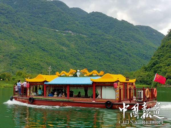 座谈会上,广西第一湾公司董事长吴进枝对调研组一行的到来表示欢迎,他详细介绍了公司近几年来在东兰发展旅游产业的情况,助推乡村振兴取得的成就,特别是对近年来东兰县立足“生态立县、旅游旺县”发展战略,充分发挥红色旅游优势,带动绿色旅游发展,红绿高度融合助推“乡村振兴”取得的显著成效进行了介绍。目前,东兰县森林覆盖率高达84.25%,排在全市第一,空气中负氧离子含量达到国家一级水平,空气优良率达90%以上,境内山青水秀、环境优美、空气清新、气候宜人,先后被评为中国长寿之乡、中国最佳养生休闲旅游目的地、中国最佳绿色生态县、中国森林养生基地、国家森林康养基地、中国气候宜居县等。广西第一湾公司近几年来在县委、县政府大力支持帮助下,通过融合红色旅游和绿色生态资源,以红带绿,开发了长乐宫、香河漂流、红水河第一湾、坡豪旅游码头、巴社山等系列景区,引起国内外关注,旅游产业日益发展壮大,目前全县创建有国家4A级旅游景区3个、3A级旅游景区2个。