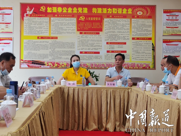 中国报道讯 (通讯员 覃源 麦国新 岑福山) 8月6日上午,广西第一湾国际旅游股份公司就当前如何应对疫情防控,市场营销,高温安全生产等问题,对公司目前正常经营的香河漂流,红水河,长乐宫,天下第一湾四大景区,以及旅行社,酒店的销售等工作召开副主任级中层干部专题会议,公司党支部书记、副总经理覃源主持。