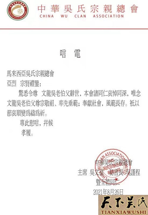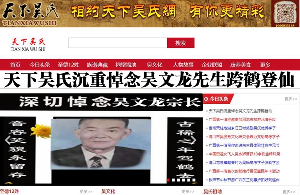 天下吴氏沉重悼念吴文龙先生跨鹤登仙