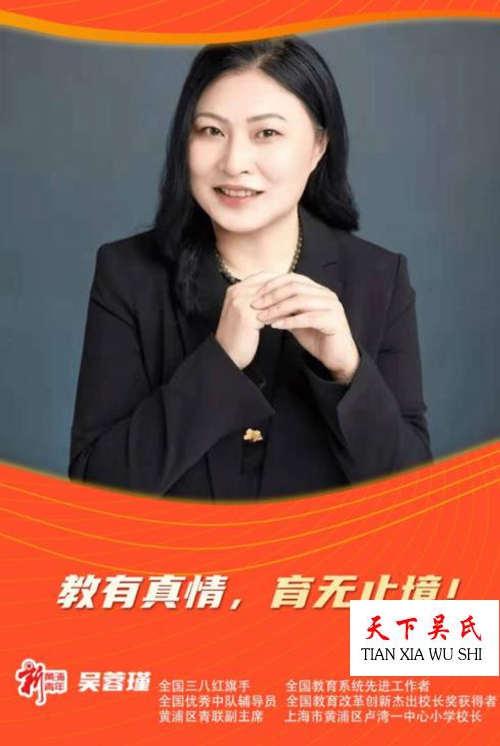 吴蓉瑾,女,汉族,1974年8月生,中共党员。 1994年毕业于上海师专。特级校长、正高级教师。  上海市黄浦区卢湾一中心小学校长、教师2020年4月,吴蓉瑾入围“全球教师奖”名单。2021年9月,全国妇联授予吴蓉瑾全国三八红旗手称号。