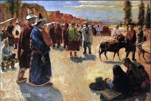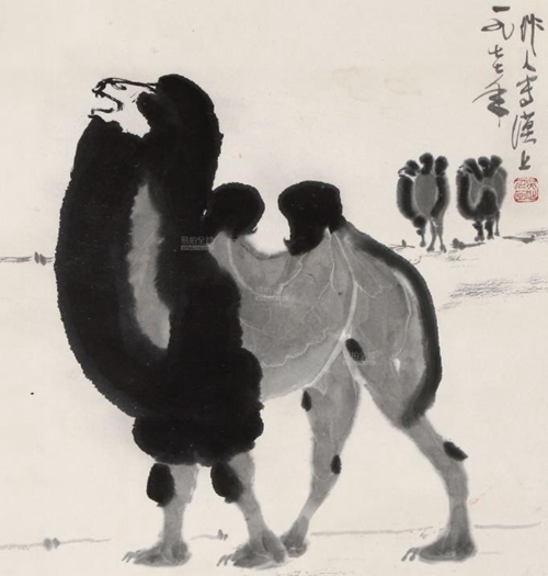 吴先生西涉大漠,在敦煌炳灵寺麦积山等地探索中国古代艺术的审美意识;漫游青藏高原,在牧区直接领略大西北淳朴人民的民族精神,长达两年的生活与艺术实践,使他从现实和历史两个方面受到民族精神与审美意识的洗礼。古代中国艺术,特别北朝艺术犷放腾动、刚健宏大的气魄;现实生活,特别是牧民生活猛勇、雄健、淳朴的素质,给他的艺术以旺盛的生命力,使他的艺术既接通了传统的源流,又找到了直接的生活源泉,得到了无比丰富的营养源。从而使吴先生的艺术体现了生活修养、精神境界、笔墨情趣的和谐统一。自然比单纯在松竹梅的传统笔墨程式中寻感要高出一筹。吴先生以造化为师深入生活,绝不只是浅层次的理解,他是在“挖深井”,从生活中提取最本质的东西,从物质的现象提取精神层次的东西。深入生活,绝不如同逛市场,满足于五光十色琳琅满目的新鲜玩意,满足于撇取一点表面的油水装点自己的画面。如同进食,他不但透过华丽的包装、漂亮的牌子选择酸甜苦辣的特色口味,而且更能直接摄取那些最富有热能与维生素的生命能量。牧区生活,他不是只猎取那些耀眼的服饰与色彩,而是取其雄浑、质朴的素质与苍莽高原的气魄。他不是只从生物学、解剖学的角度研究骆驼、牦牛在雪线地域高寒缺氧生存过程中形成的那种拼搏、刚劲、倔强的勇与力;骆驼在荒漠缺水的环境中形成的坚韧刚毅耐劳的素质。这样吴作人直取生活宝藏中的精粹,得到了最强烈、最本质的生活感受,也就是获得了艺术创造的最基本原动力--艺术真情。