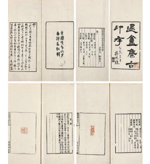 以文会友广交名士 吴隐以一个碑刻店学徒的身份,成功跻身杭州、上海的文化圈,与他的兴趣偏好不无关系。在杭州学习碑版时,吴隐就与日后同为西泠印社“创社四英”的叶铭一起出入于清兵部侍郎、山水画家戴熙的儿子戴用柏的门下,学习古文及金石篆刻等知识。吴隐喜欢购买古籍,收集各种金石拓本供自己临学,一有好书,还拿去给有“清末民初四大才子”之称的著名藏书家缪荃孙看,请他对书作评价。20岁时,吴隐曾作诗一首,记录自己当时的经历与想法:“敢将岁月等闲过,断碣残碑一室罗。金石能为臣刻画,随他刀笔汉萧何。”