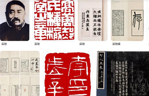 吴隐工书、画,善刻印、篆、隶骎骎入古,山水秀润有新意,尤以精制印泥著名。更创制仿宋聚珍排印书籍。光绪三十年(1904)与丁仁、王福庵、厉良玉、叶为铭等创设“西泠印社”于西湖孤山,而自设分社于上海。尝集古今名人楹帖缩刻于石,名古今楹联汇刻,又集所藏印为遯盦集古印存。又有遯盦印话、铁书、古陶存、泉存、砖存、编遯盦金石丛书。卒年五十六。次子珑,字振平,能继父业。