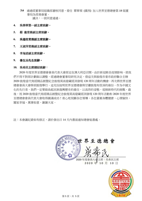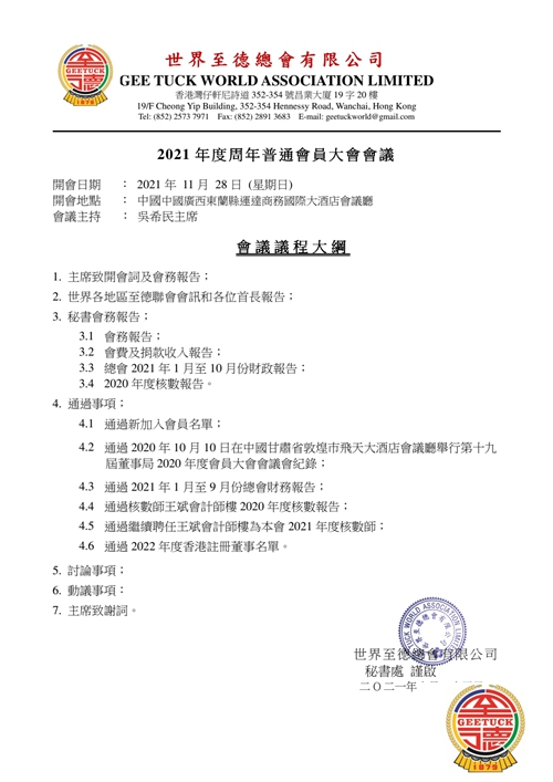 世界至德总会会员大会11月25日在第一湾召开