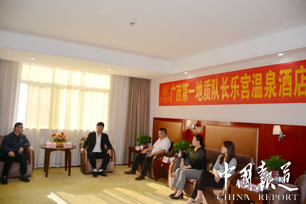 中国报道讯 (通讯员覃源 岑福山 麦国新)10月20日,广西壮族自治区第一地质队一行5人,在党委书记简水荣带领下来到到广西第一湾国际旅游股份公司进行长乐宫名胜旅游景区温泉酒店自然资源业务交流,并达成合作初步协议。