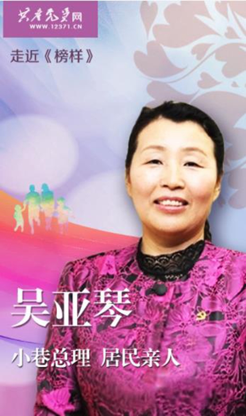 吴亚琴出生于1960年7月,20年来,她始终以坚强的党性、廉洁的品格、开拓的思维、务实的作风诠释着对党的事业的执着挚爱、对社区百姓的一片真情,以一股韧劲、狠劲、冲劲,带领社区党员和群众把昔日“老、旧、散、弃”的社区,建设成为“零犯罪、零家暴、零吸毒、零辍学、零失业家庭、零矛盾升级、零非正常上访”的和谐幸福社区,受到了干部群众的广泛赞誉,得到了各级党组织的充分肯定。她先后获得全国“模范人民调解员”、全国“五一”劳动奖章、全国先进工作者、全国“时代楷模”、全国“三八”红旗手、吉林省优秀共产党员、吉林省“社区工作者楷模”等荣誉称号。