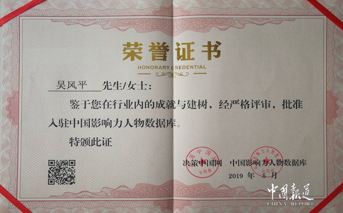 吴风平还有着深厚的家国情怀,非典时期积极献方得到了国家中医药管理局的表彰。新冠肺炎疫情期间第一时间向社会贡献预防和治疗冠状肺炎的组方,并积极配合当地政府身处一线开展防疫抗疫工作,连续四个星期熬制预防冠状肺炎中药液至凌晨四点,义务免费给广大群众和防疫工作人员送药达6000余人次,赠送口罩达5800余个,价值达17万元,得到主管部门与政府的肯定,被授予“新冠肺炎防控先进工作者”荣誉称号,也是所属区域内200余家民营医疗机构唯一荣获此殊荣的单位和个人。