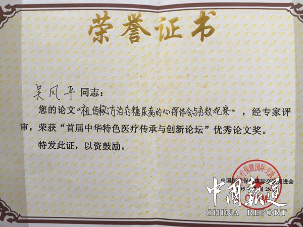 吴风平临床三十余年来,秉承祖上高尚的医德医风,虽身怀绝技,但却谦虚低调,他以德服人,以术服人,从不以名医或大师自居,对同道、学生、徒弟、平民百姓、患者皆一视同仁。以擅长治疗糖尿病、高血压、肿瘤与癌症、中风偏瘫(半身不遂)、类风湿病、强直性脊柱炎、股骨头坏死、腰间盘突出、尘肺病、肝硬化及腹水、胆肾结石病、哮喘、牛皮癣、白癜风、男女不孕不育症等久治不愈的疑难杂症而名誉国内外。