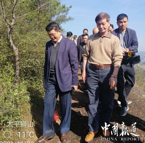 中国报道讯(吴蜀丰报道)冬日暖阳,最宜远足。11月28日上午,在梧州柏茂茶叶有限公司总经理、广西吴氏经济文化研究会常务副会长吴茂柏总经理的精心组织和策划下,梧州市12届政协副主席黄荣森,梧州市乡村振兴局副局长黄文斌、梧州市中华文化促进会秘书长李秀维,中藤县县委常委、统战部长、副县长唐宏飞一行登太平狮山考察调研,得到了中共太平镇党委书记唐培干、常务副镇长胡朝豪等的亲切接见和陪同,兴致勃勃登上了巍巍桂东第一山。石花台、古琴台、岑山寨等适宜登高远眺、寻幽探胜的各个景点,留下了他们考察的足迹,从不同角度俯瞰太平古镇,令人心旷神怡,神游万里。