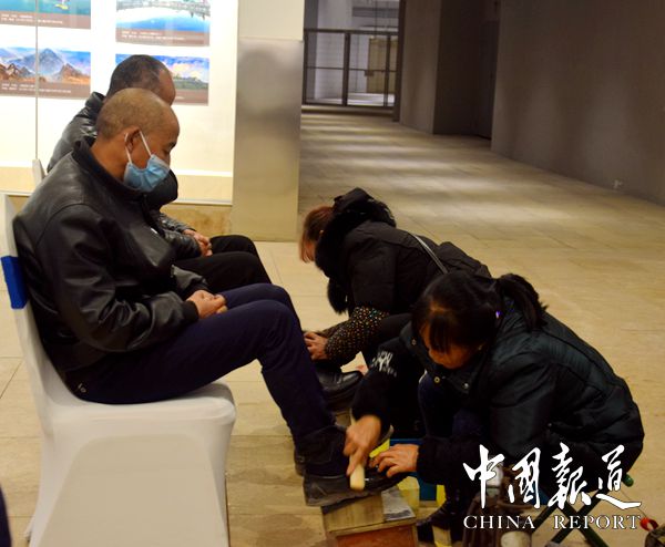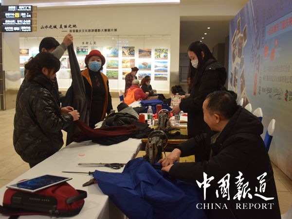 在寒冷的冬天,在活动现场,我们看到一批特殊的裁缝师和鞋匠师傅在来福士购物中心 L1 层非遗蜀锦区域,提供为期三天的服务如免费给社区业主和租户及往来行人擦皮鞋,免费修补皮鞋,免费缝补破旧衣服等。这场公益活动由中国新加坡商会重庆分会全程策划发起,凯德地产(中国)重庆公司赞助本次活动。
