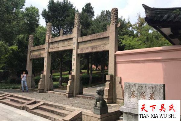 苏州泰伯墓位于苏州灵岩山后山,占地半亩。《至德志》记载“泰伯墓一在吴县(今苏州吴中区)灵岩山之麓;一在无锡县(今无锡新吴区鸿山街道)东皇山”;《吴县志》载:灵岩山在吴县西南三十里,其下有泰伯墓。