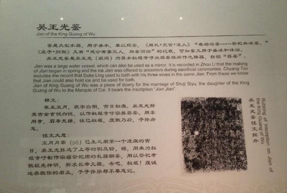 在蔡国和其他小国的支持下吴国终于打败了楚国,并且攻占了楚国的都城郢,吴王阖闾下令把在战争中收集到的部分战利品用来铸造一对青铜鉴,这就是我们今天看到的吴王光鉴。
