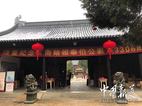 中国报道讯(通讯员吴刚虹)华夏千秋,泰伯永光,人文始祖,江南锦昌。2月8日(农历初八)上午8点,为纪念江南人文始祖泰伯公诞辰3306周年,无锡市新吴区泰伯文化研究会泰伯吴氏祖地宗亲总会在吴新会长的策划下,积极响应泰伯庙文保所“人数控制”要求,精心布局,由祖地宗亲总会携常州宗亲分会、江阴分会、宜兴分会、常熟分会、福建宗贤等50人代表,伴着雄壮的吴歌乐曲,在无锡新吴区梅村镇“泰伯庙”隆重举行。