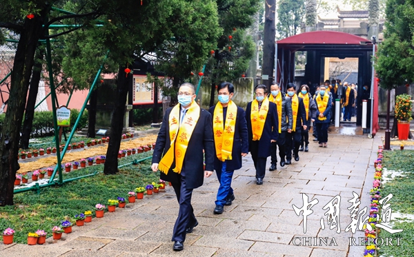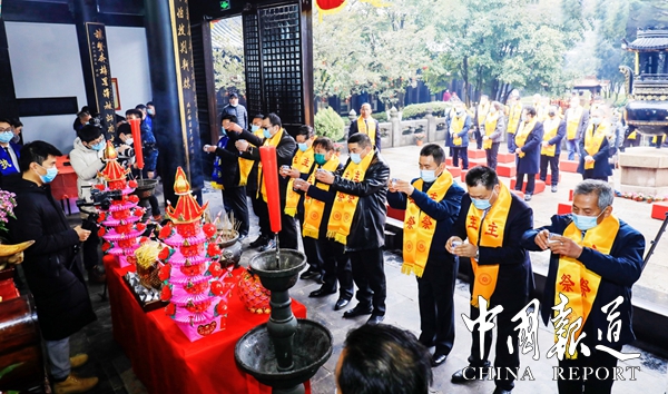 中国报道讯(通讯员吴刚虹)华夏千秋,泰伯永光,人文始祖,江南锦昌。2月8日(农历初八)上午8点,为纪念江南人文始祖泰伯公诞辰3306周年,无锡市新吴区泰伯文化研究会泰伯吴氏祖地宗亲总会在吴新会长的策划下,积极响应泰伯庙文保所“人数控制”要求,精心布局,由祖地宗亲总会携常州宗亲分会、江阴分会、宜兴分会、常熟分会、福建宗贤等50人代表,伴着雄壮的吴歌乐曲,在无锡新吴区梅村镇“泰伯庙”隆重举行。