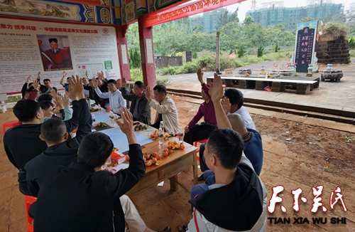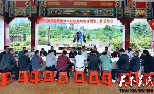 会议由海口市吴贤秀文化研究会吴林桥会长主持。海口市常务副会长:吴富荣、吴坤导、吴敦壮、秘书长:吴乾山,监事长:吴和春,副会长:吴明海,监事:吴群与会。在现场围绕墓园的整体规划设计,各市县宗亲会负责人,进言献策,十分赞同改造方案。定安县吴氏宗亲会吴彬平会长首先发言说,祖宗事业组织大家一起商量规划落实,海口市吴贤秀文化研究会作为区域属地,牵头把墓园规划治理,做好协调工作提升祖公的光环是了不起的。昌江县吴氏宗亲会吴云雄会长说:很荣幸参加今天的现场会,把原来不合理的杂乱,规划治理好是全族人的愿望,现在已是新时代要创新统筹共同目的为子孙后代,同心协力,把祖宗事业做大做强。