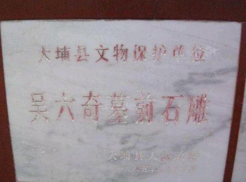 御赐一品典式营造。其墓于大埔县湖寮虎山下,御制碑文、祭文、遣官祭葬。馀暇读书,工书法。著有《忠孝堂文集》。投顺清廷 吴六奇,广东丰顺人,明亡附桂王朱由榔为总兵,以舟师距南澳。本朝顺治七年平南王尚可喜等自南雄下韶州,六奇与碣石总兵苏利迎降。六奇故贫时乞食他郡,习山川险夷。至是请为大军向道(疑为导),招徕旁邑自效。