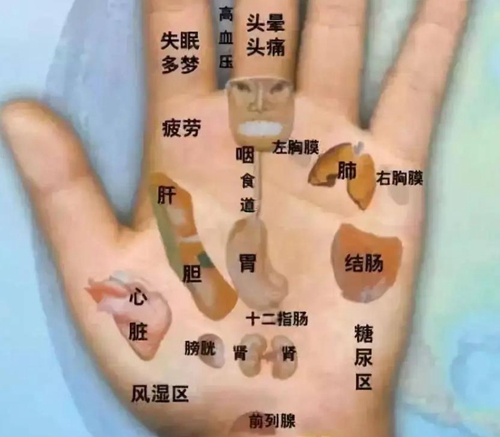 看小拇指 测泌尿生殖功能 小拇指对应经络是心、小肠经,对应器官是肾脏、循环系统。小拇指苍白细弱,易得吸收不良或排便不畅等肠道疾病;手指短小,提示肾气不足,易得头晕、耳鸣、腰腿酸痛等病;手指短小或过度弯曲,提示有性功能、生育功能方面的障碍。