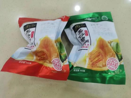 黑米豆沙粽:100g/袋,配料:糯米、黑米、饮用水、红豆沙馅、黑米、白砂糖。
