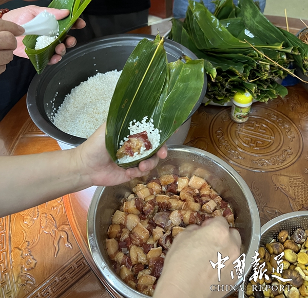 活动现场,广大员工“八仙过海,各显神通”,通过把粽叶卷成漏斗状,填米、压紧、扎绳,一个个不同口味不同形状的粽子便在巧手中完成,一边包粽子一边唠家常和畅谈公司工作,在一起有说有笑,大家包的粽子有肉馅的、板栗馅的,还有纯糯米的。粽子成品形态各异,有尖尖三角的,传统四角的,细细长长的。