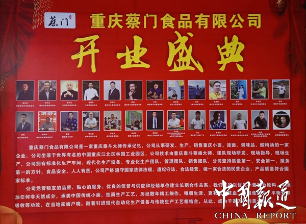中国报道讯(吴蜀丰 报道)7月15日,重庆蔡门食品有限公司旗下的重庆小面生产线举行开业庆典暨重庆渝奉经纬实业有限公司答谢宴会在重庆两江新区举行。