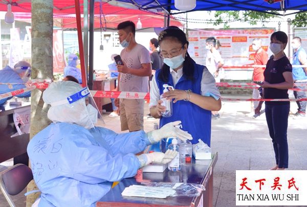 基于当前海口疫情严峻,疫情防控人人有责,海口市吴贤秀文化研究会文化志愿者服从组织安排,按时到位,积极维护好秩序,配合好医务人员,争取早日达到社会面清零。发扬光大好吴氏至德精神,做好防疫,德行无亏。