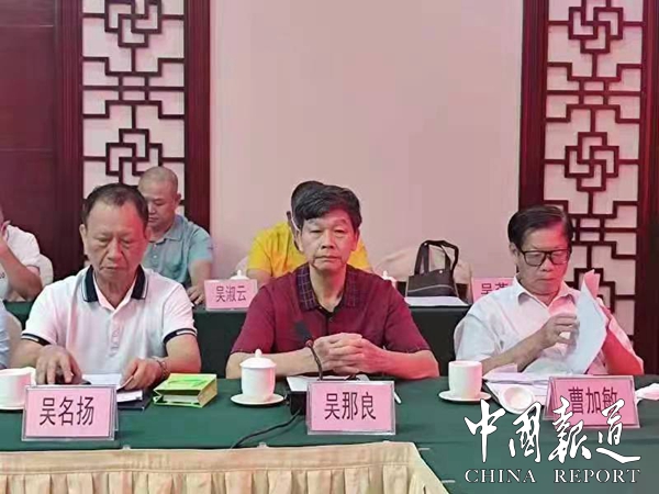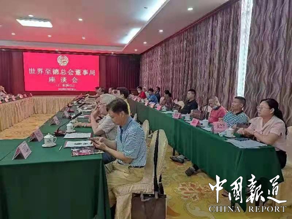 中国报道讯(通讯员 程瑞华)6月28日,世界至德总会董事局在广东省湛江市海滨宾馆举行“助推文化经济产业发展”座谈会,来自黑龙江、台湾省、澳门特别行政区、多米尼加、阿尔及利亚的分会、联会及国内各团体80名负责人,陈浪沛、贺君、吴寿炎、汪椿涛、吴仲奇、吴明祥、邢登科、吴惠生、吴泽波、蔡添裕、吴利勋等人以视频讲话、电话及微信,对座谈会成功召开表示祝贺。