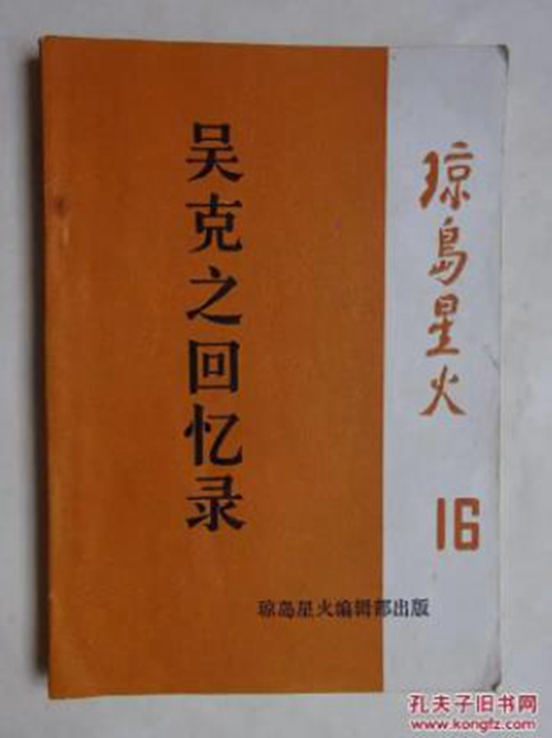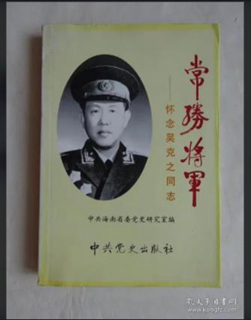 吴克之同志参军后,历任独立队中队长、琼崖抗日游击独立总队大队长、支队长兼琼山县县长;琼崖纵队副司令员兼总队长和政委;第一副司令员、攻势前线总指挥和政委;海南军区第一副司令员;南京军事学院训练部副部长、科学研究部副部长、训练研究部副部长;防化学兵科学技术研究院院长、总参防化部副部长等职。1961年晋为少将军衔。
