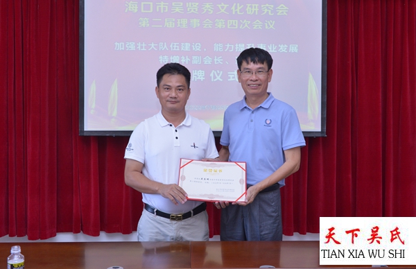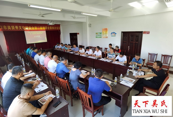 天下吴氏网讯(海南工作站吴乾山报道)7月25日,海南省海口市吴贤秀文化研究会第二届理事会第四次会议在海口市琼山区儒逢村党群服务中心大楼如期召开。