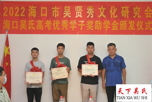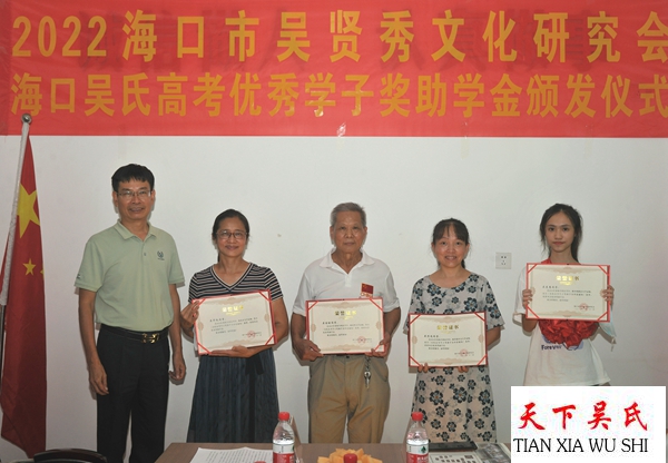 因为疫情一切从简,“奖助学金”颁奖仪式由海口市吴贤秀文化研究会监事长吴和春主持,名誉会长:吴川富,常务副会长:吴富荣,吴孝权、吴坤导、吴敦壮,副会长:吴雄兴、吴淑波、是多钊、吴应明、吴川佩、吴坤清,理事吴宁、吴忠、吴崇胜,监事:吴群等参加颁奖活动,