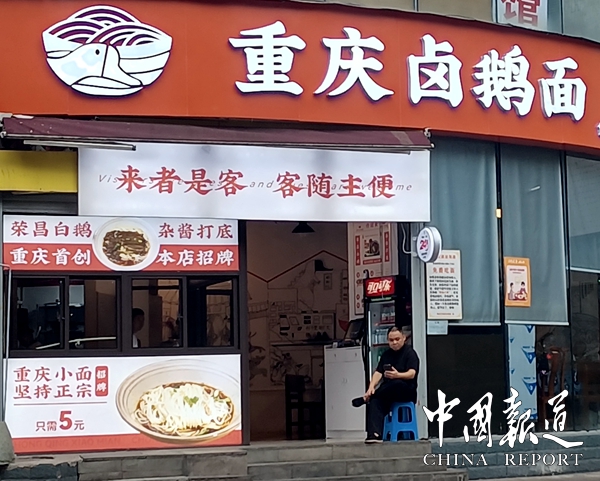 在享誉“火锅之都”、“美食之都”的重庆中央商务区——解放碑民生路,有一家刚开业不久的重庆卤鹅面,小面仅卖到5元一碗,价格仿佛回到十年前。