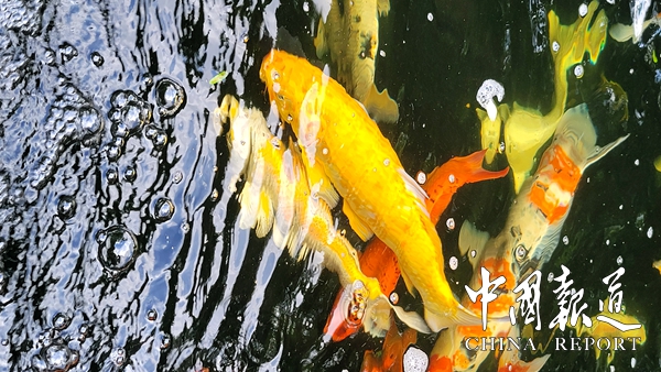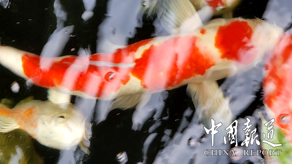 中国报道讯(通讯员岑福山麦国新)在东兰县长乐宫景区内,极具观赏性的鲤鱼池格外引人注目,成为景区新靓点,吸引游客们争先恐后用手机记录池内鲤鱼活泼可爱的场景。一条条锦鲤体格健美、色彩艳丽、花纹多变、泳姿雄然,具极高的观赏和饲养价值。